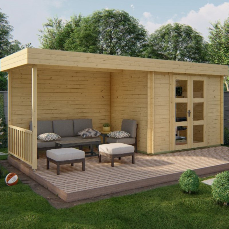 Chci individuální nabídkuZahradní chata Maja je chata s velkým přístřeškem o celkových rozměrech rozměrech 640 x 240 cm. Její užitná plocha je 6,6 m2 a užitná plocha přístřešku 7,2 m2. Rozměry základů jsou 630 x 220 cm. Chata má rovnou střechu, která přesahuje do boku o 330 cm a zakrývá tak celý boční přístřešek, který navíc má plnou zadní stěnu, která poskytne ochranu před nepříjemným větrem. Dvoukřídlé vstupní dveře jsou široké 143 cm a jejich výška je 199 cm. Nejvyšší bod chaty je od země ve výšce 228 cm. Dveře jsou zaskleny 4 mm silným sklem. Po straně přístřešku je zábradlí vysoké 75 cm.