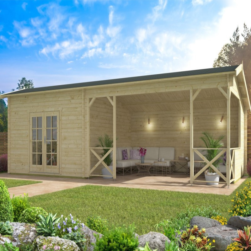 Chci individuální nabídkuZahradní chata Mokka je velká chata o vnějších rozměrech 900 x 400 cm. Její užitná plocha je 13,8 m2 + 18,4 m2 terasa a rozměry základů jsou 880 x 380 cm. Chata má klasickou sedlovou střechu, která přesahuje přes boční stranu o 500 cm a tvoří tak útulnou terasu. Vstupní dveře do chaty jsou dvoukřídlé, široké 155 cm a vysoké 188 cm. Do boku chaty lze přiobjednat ještě další jednokřídlé dveře směrem na terasu. Nejvyšší bod chaty je od země ve výšce 279 cm.