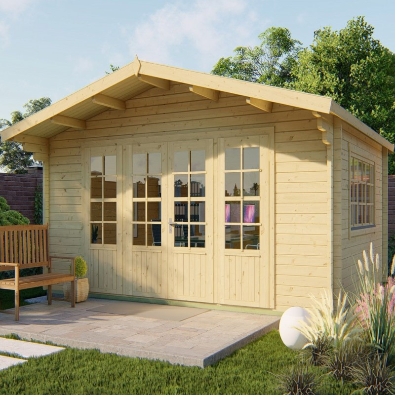 K výrobě dřevěné chaty je použit severský smrk. Dřevo je dohladka ohoblováno a dokonale vysušeno, aby po sestavení nedocházelo k jeho kroucení a ohýbání. Stěny se skládají z jednotlivých prken o síle 58 mm, které do sebe mají v přesně daných vzdálenostech vyříznuté zámky. Tyto zámky do sebe perfektně zapadnou, stavba je tak velice rychlá a bezproblémová. Montáž střechy probíhá obdobně, zámky jsou do střešních palubek vyfrézovány po celé délce, palubky pak do sebe jednoduše zasouváte a postupně zajišťujete spojovacím materiálem.