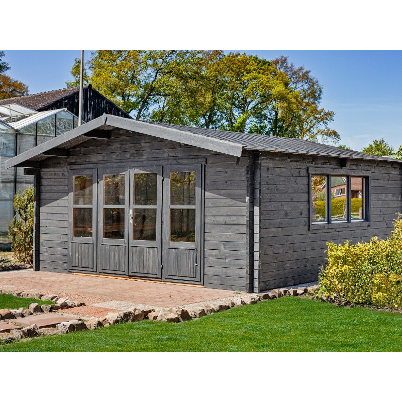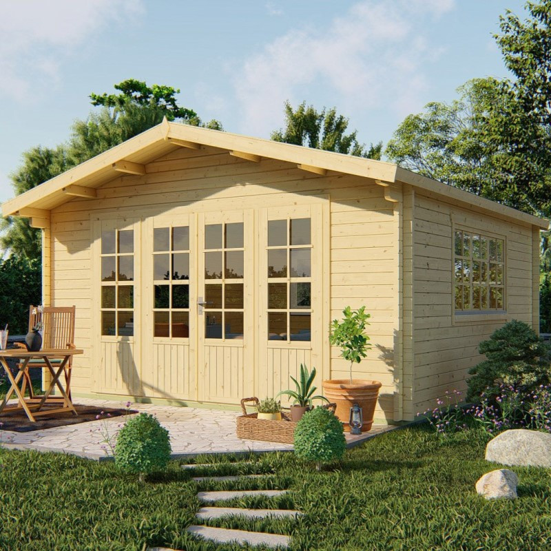 Chci individuální nabídkuZahradní chata Southampton je jednoduchá zahradní chata o vnějších rozměrech 540 x 600 cm. Její užitná plocha je 27 m2 a rozměry základů jsou 540 x 540 cm. Chata má klasickou sedlovou střechu, která přesahuje přes vchodové dveře o 60 cm. Dveře jsou dvoukřídlé široké 159 cm a jejich výška je 194 cm. Nejvyšší bod chaty je od země ve výšce 276 cm. Na každé straně vedle dveří je po jednom okno rozměrech 78 x 194 cm. Okna jsou vyztužena dřevěnými latěmi a jsou zasklena izolačním dvojsklem 4 - 6 - 4 mm (sklo - vzduch - sklo). Z boku chaty je velké otevíratelné okno o rozměru 213 x 96 cm.