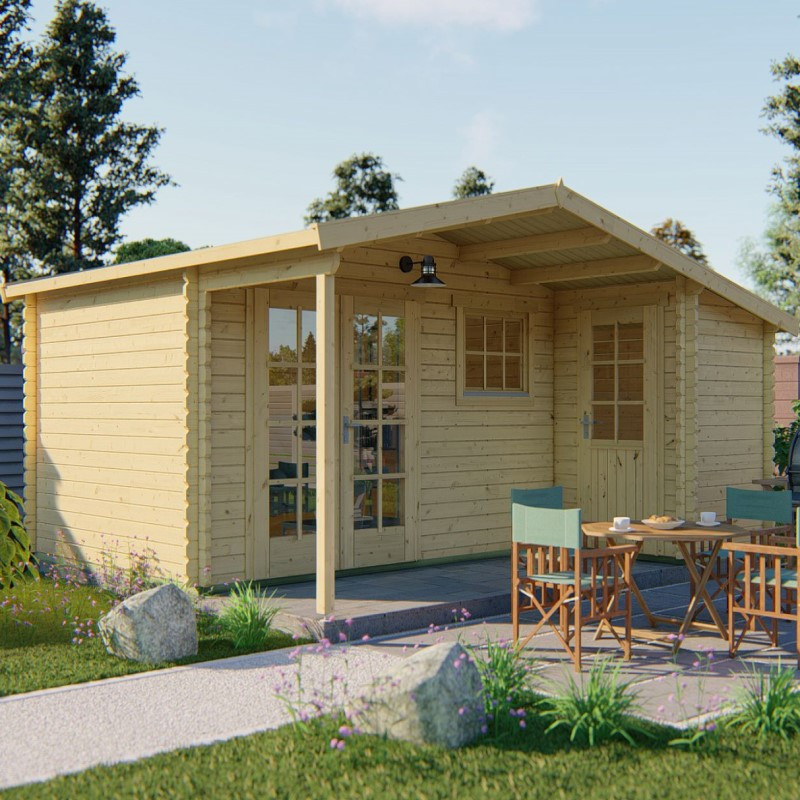 Chci individuální nabídkuZahradní chata Wolfgang je velká dvojdílná chata do L o vnějších rozměrech 530 x 450 cm. Chata je rozdělena na dvě části - hlavní obytnou část a menší přístavek na ukládání sportovních potřeb nebo zahradí techniky. Větší část má rozměry 379 x 280 cm - užitná plocha je tedy 10,6 m2, přístavek je velký 117 x 450 cm, užitná plocha činí 5,4 m2. Chata je vybavena dvoukřídlými prosklenými dveřmi pro vstup do hlavní místnosti, ty mají rozměr 159 x 188 cm, do přístavku jsou použity jednoduché dveře s oknem s rozměry 83 x 188 cm.
