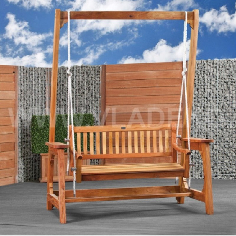 Zahradní houpačka se skládá ze základní konstrukce a na ní zavěšené houpačky. Lavička i nosná konstrukce jsou vyrobeny z tvrdého teakového dřeva, které bylo při výrobě dohladka ohoblováno. Houpačka je dodávána již ošetřená olejovým nátěrem, který zvyšuje odolnost dřeva před povětrnostními podmínkami. Houpačka má rozměry 175 x 120 x 230 cm a lavička má šířku 125 cm.