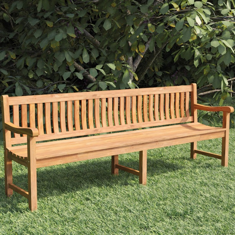 Zahradní lavice s opěradlem z teakového dřeva je dlouhá 210 cm. Šířka lavice je 51, šířka sedáku 44 cm a výška opěradla 91 cm. Lavice z masivního dřeva je svou robustností vhodná na chaty, chalupy a do velkých zahrad.