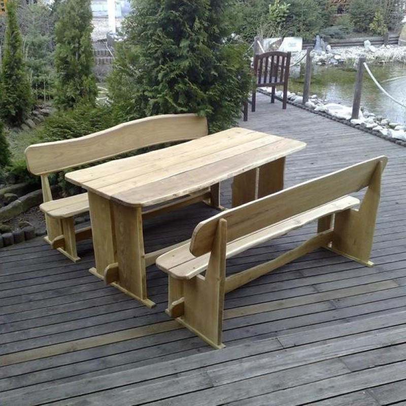 Zahradní souprava obsahuje stůl a dvě lavice. Délka stolu a lavic je 180 cm. Deska stolu je cca 75-78cm x 180cm, výška desky od země je 76cm. Sedák lavice je cca 30-35cm x 180 cm, výška od země je 44cm. Rozměry se +/- liší z důvodu rozmanitých tvarů použitých prken.