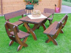 SklademZahradní dřevěný nábytek - stůl, židle, lavice s opěrkou a lavice bez opěrky