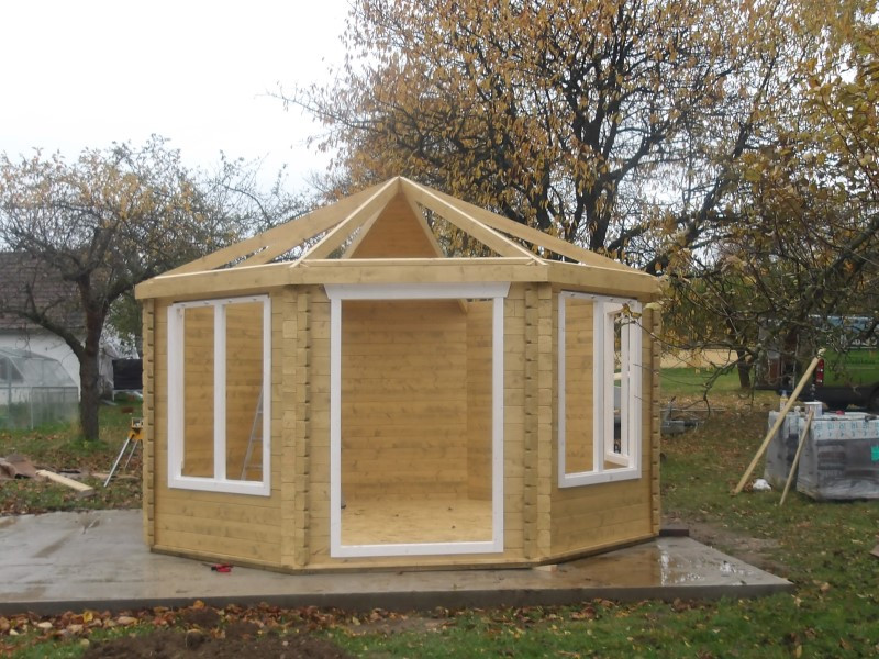Paní Alena se na nás obrátila s přáním vytvořit útulné venkovní místo, kde se dá trávit čas s rodinou i přáteli od jara do podzimu. Volba padla na osmiboký zahradní altán Lynn.