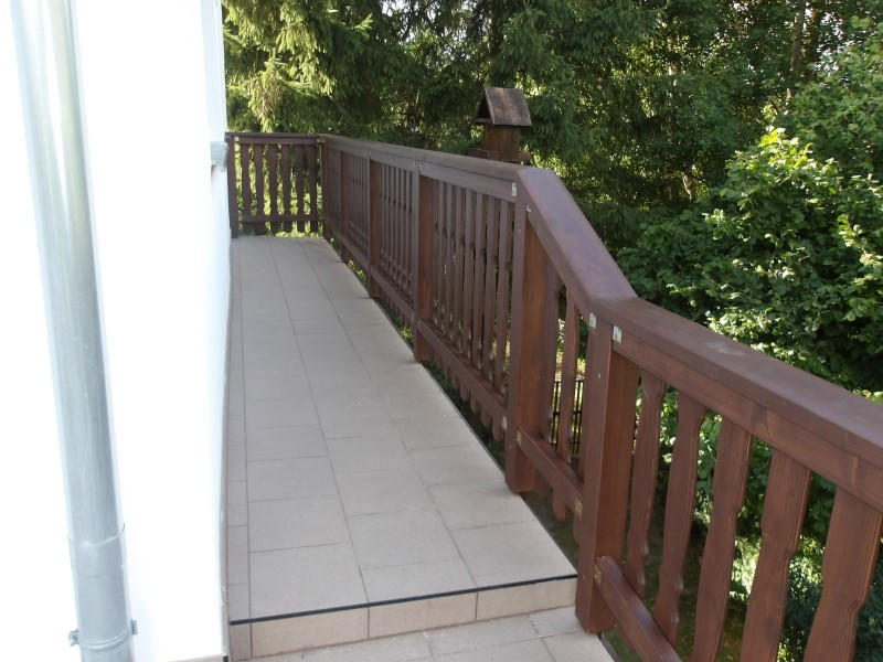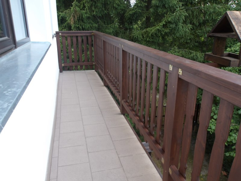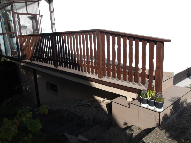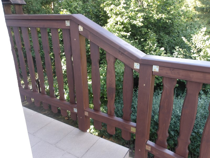 Základem dřevěného zábradlí ať už na balkon nebo terasu je vždy hladce hoblované a dokonale sušené smrkové dřevo. Naši truhláři vědí, že jen perfektně připravený materiál zaručí dlouhou životnost a krásný vzhled. Dřevěné prvky jsme ještě před samotnou montáží u zákazníka na lakovně ošetřili třemi nátěry lazurou v odstínu palisandr, která dřevu dodala elegantní tmavý tón a zvýšila jeho odolnost proti povětrnostním vlivům.