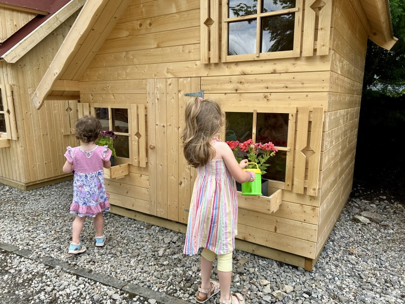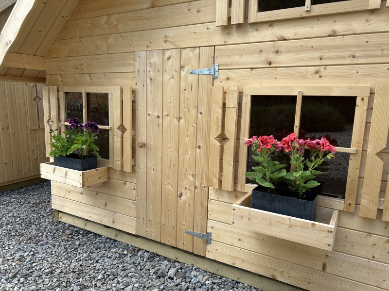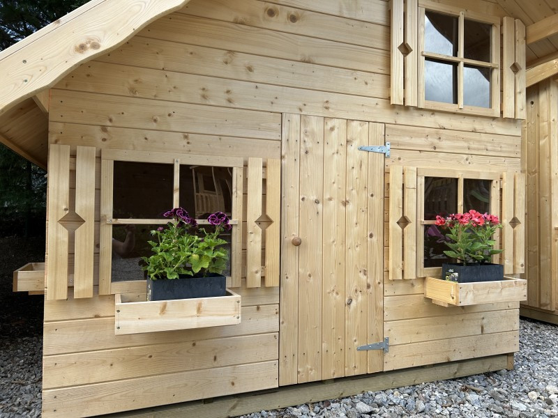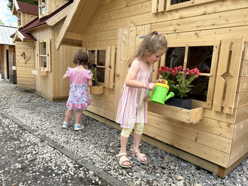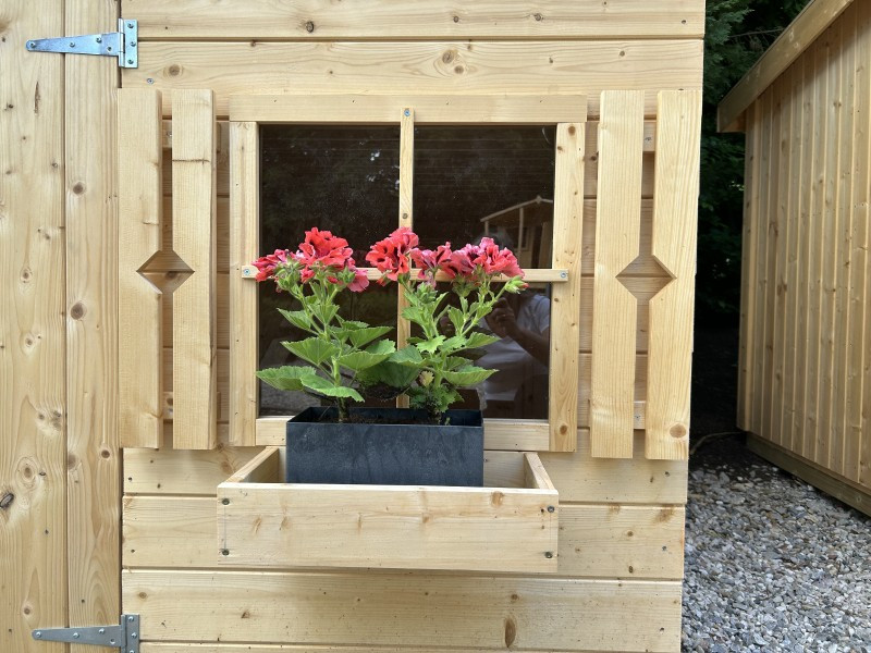 Truhlíky Flexi Element se dají koupit jako stavebnice, ale můžete je zakoupit i jednotlivě po pár kouscích. To když chcete udělat dětem radost nebo je také trochu zapojit do péče o zahradu. Dva truhlíky z recyklovaného plastu se čtyřmi miskami jsme zakoupili a doplnili jimi malý dřevěný zahradní domeček.