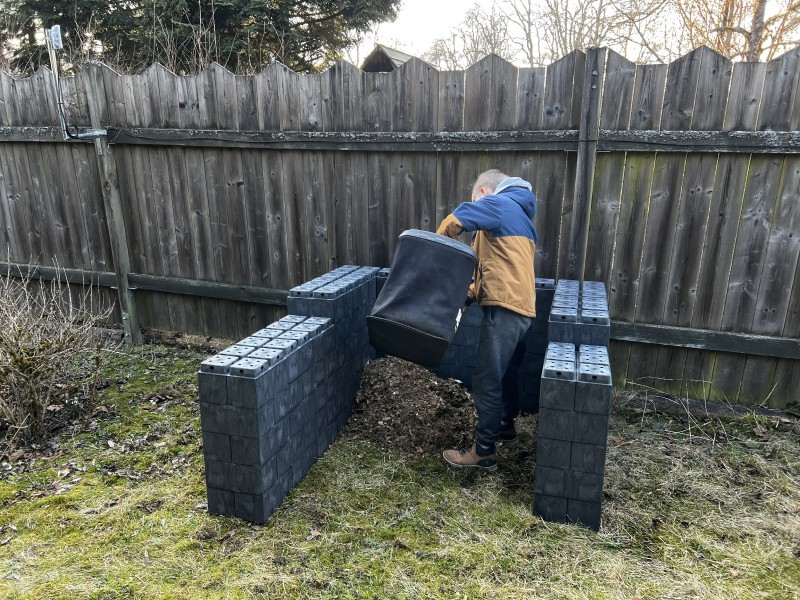 Momentálně chystáme rekonstrukci celé zahrady a stále zatím hledáme ideální místo pro umístění kompostéru. Než se finálně rozhodneme kam s ním, postavili jsme si z modulárních truhlíků Flexi Element provizorní, který nám skvěle poslouží už teď.