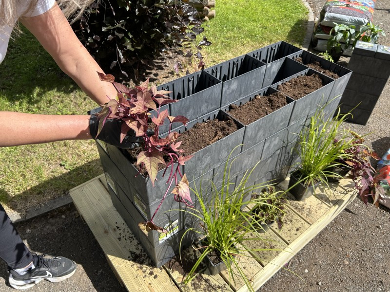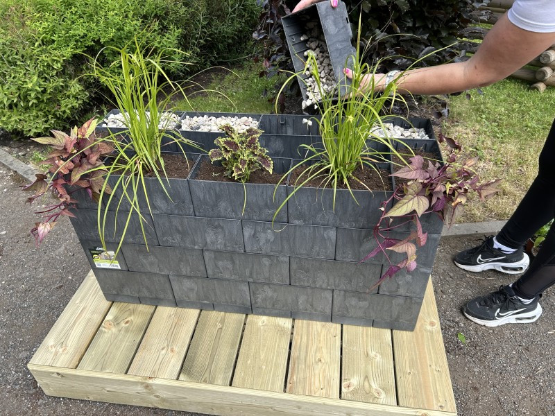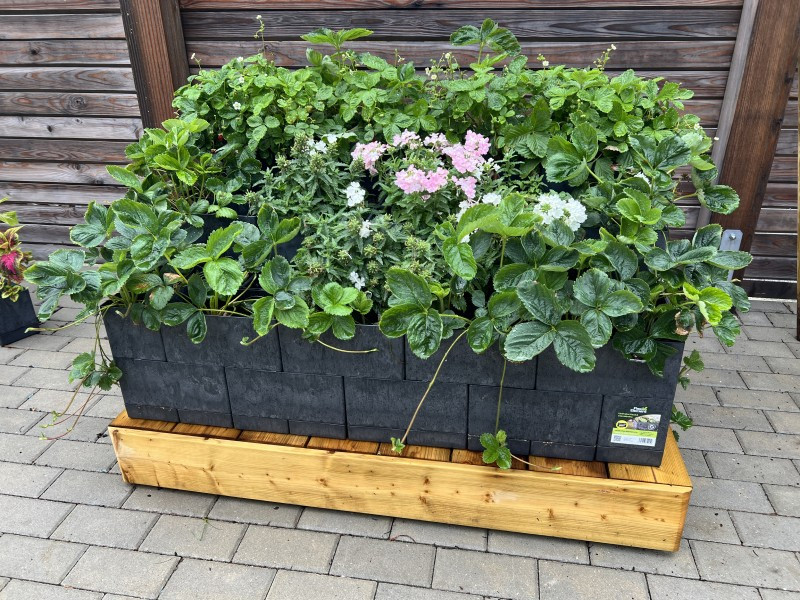 Určitý počet truhlíků Flexi Element lze použít na stavbu vyvýšeného záhonu ve tvaru čtverce nebo obdélníku a to do jakékoliv výšky. První řadu truhlíků je vhodné k travnatému podkladu připevnit plastovými kolíky (je nutné je přiobjednat, nejsou součástí dodávky). Na dno záhonu je pak vhodná drenáž v podobě kůry nebo větších větví.