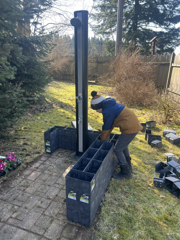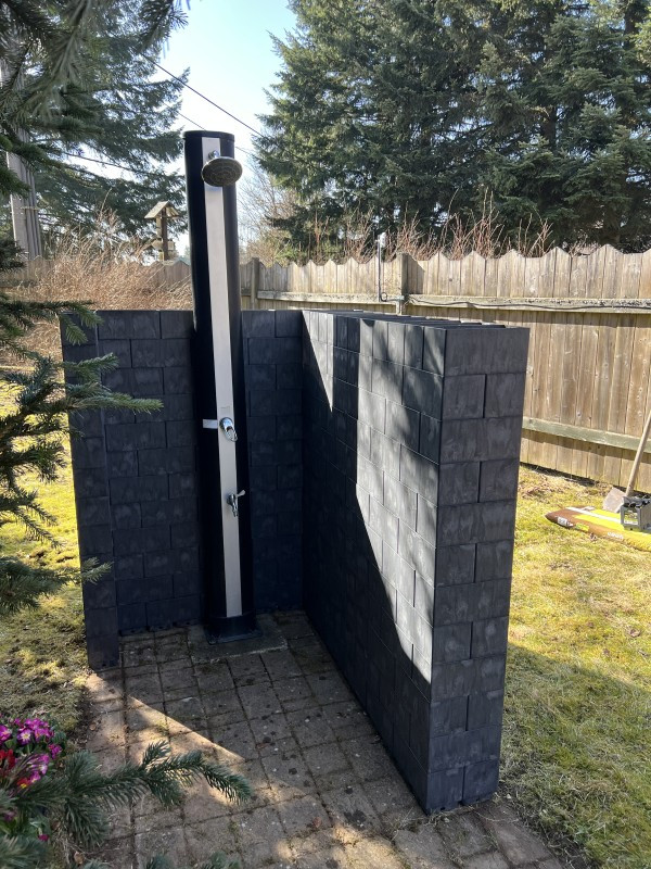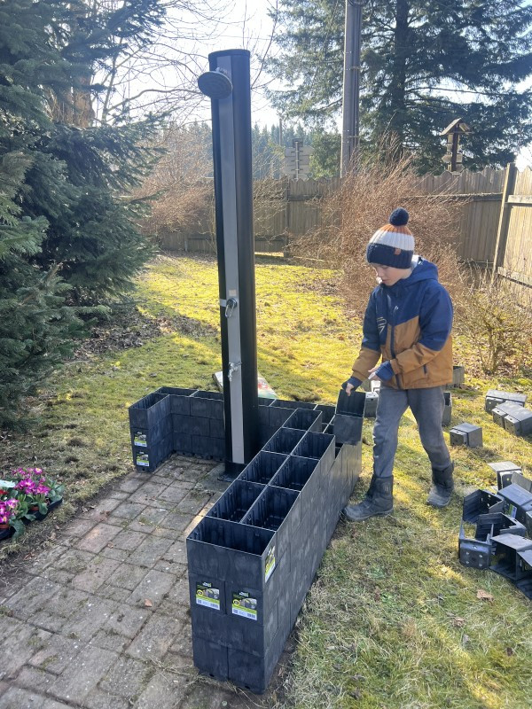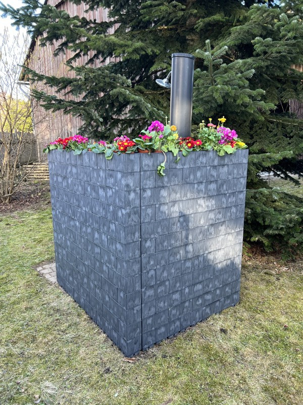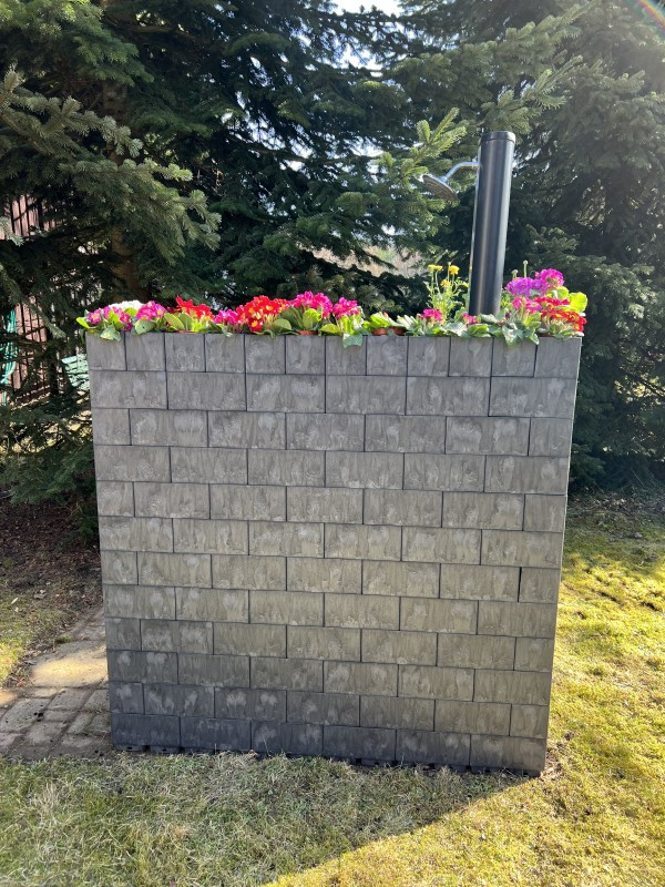 Truhlíky Flexi Element nemusí sloužit pouze na pěstování bylinek nebo zeleniny. Je to totiž stavebnice ze které lze postavit cokoliv. Co třeba takovou zástěnu k zahradní sprše? Takovou jsme pro vaši inspiraci zkusili postavit i my abychom vám ukázat, že to jde.