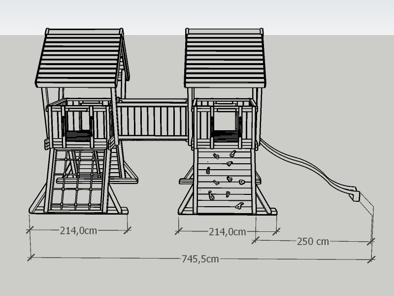 Konstrukce je vyrobená z masivního smrkového dřeva s tlakovou impregnací, takže zvládne deště, slunce, sníh i nekonečné šplhání. Použité stojky o profilu 9 × 9 cm dávají celé sestavě pevnost, jakou veřejné hřiště potřebuje – a samozřejmě vše splňuje přísnou normu ČSN EN 1176, která platí pro veřejná dětská hřiště.
