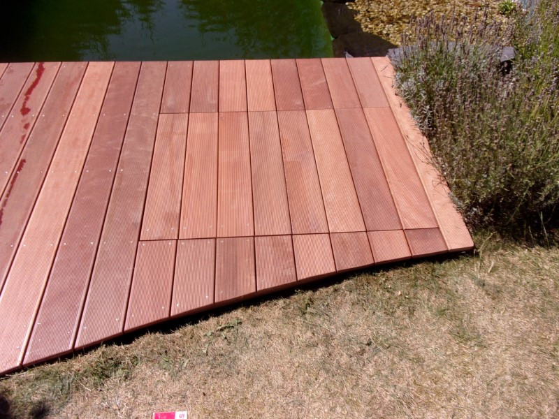 Pro stavbu mola včetně přidaných schůdků jsme zvolili Massarandubu, tropické tvrdé dřevo s mimořádnou odolností vůči vlhkosti, dřevokazným houbám i hmyzu. Díky své hutnosti, pevnosti a dlouhé životnosti je ideálním materiálem pro trvalý pobyt venku — zejména v kontaktu s vodou. Pro větší bezpečnost jsme použili terasová prkna s jemným horním drážkováním.