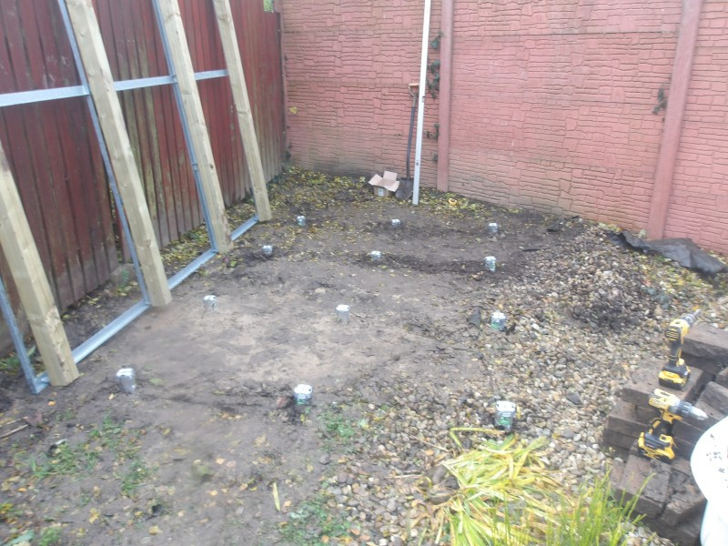 Protože se psí kotec montoval v nerovném terénu, tak bylo nutné místo klasických betonových patek použít výškově stavitelné zemní vruty BAYO.S, které zajišťují stabilní a rychlý základ bez nutnosti betonování. U kotce je zásadní, aby jeho podlaha byla v naprosté rovině, a právě stavitelné vruty umožňují doladit výšku s milimetrovou přesností. Každý vrut byl zavrtán přesně podle předem připraveného rozkresu, aby následná konstrukce perfektně seděla.