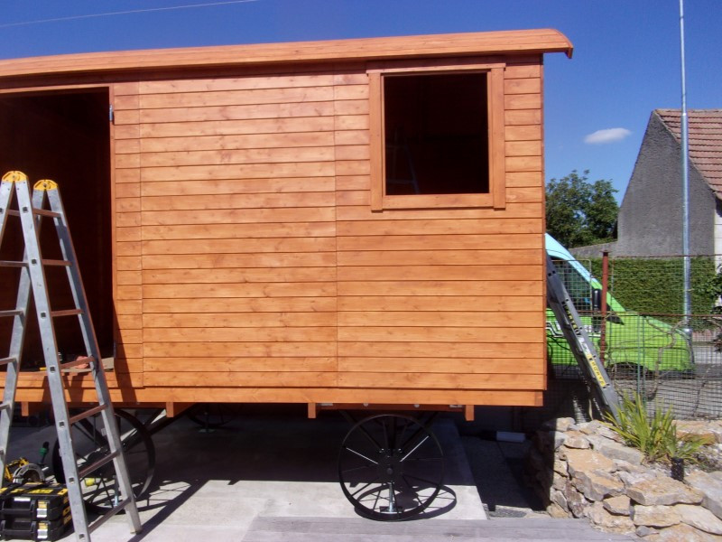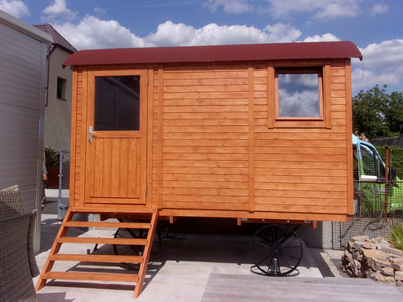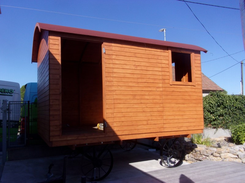 Protože si paní Věra přála maringotku přizpůsobit svým potřebám, doplnili jsme k ní ještě jednu sadu kol a také asfaltovou střešní lepenku v červené barvě. Díky tomu je stavba ještě odolnější vůči počasí a lépe chráněná před vlhkostí. Dodatečná sada kol usnadňuje manipulaci a posouvá využitelnost maringotky o další krok dál.