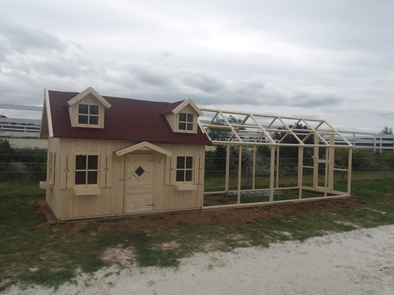 Společně jsme proto vybrali dětský domeček Marie, který bude sloužit jako útočiště a klidná část výběhu. Zahradní domeček má rozměry 286 × 193 cm, je vybaven dřevěnou podlahou a je vyrobený ze smrkových profilů o síle stěny 16 mm. Dodali jsme jej v původním provedení bez povrchové úpravy, aby si jej paní Míša mohla natřít přesně podle svých představ.