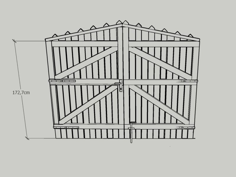 Nosná konstrukce obou křídel vrat byla zhotovena ze smrkového hranolu o rozměru 4,4 × 4,4 cm, což zaručuje vysokou pevnost a dlouhou životnost celé konstrukce. Ještě před kompletním sestavení byla vrata ošetřena v naší lakovně lazurou Xyladecor v odstínu Palisandr, která dřevu dodala elegantní tmavohnědý tón a zároveň jej ochrání před povětrnostními vlivy, UV zářením i vlhkostí.