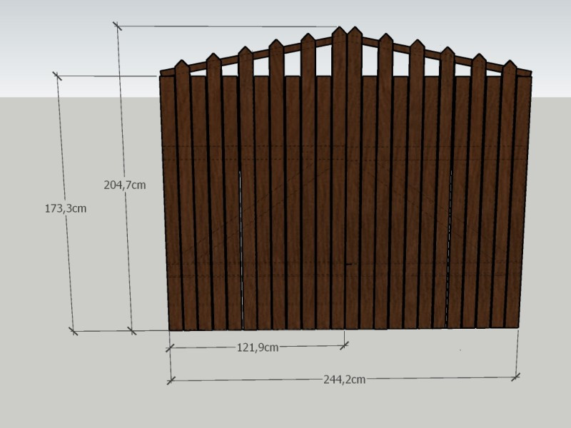 Součástí projektu byl také návrh a výroba 24 kusů plotových planěk dle grafického návrhu našeho kolegy. Všechny plaňky měly shodné rozměry 1,8 × 9,4 cm, lišily se však tvarem zakončení – 12 planěk bylo v horní části zakončeno rovně a 12 planěk mělo horní zakončení do špice. Tento detail dodal vratům vizuální zajímavost, která ladí s tradičním stylem venkovských plotů.