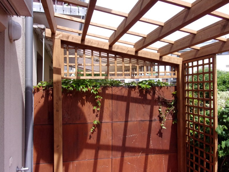 Součástí konstrukce je také dekorativní dřevěná mříž Eva s okem 10 × 10 cm, která slouží nejen jako stínící prvek, ale i jako designový doplněk. Mříž je vsazenou do rámu a upravena přesně na míru celé pergoly.