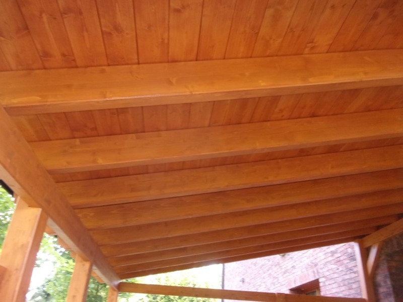 Důležitou roli hrála také povrchová úprava – všechny palubky byly ošetřeny stejnou lazurou, jaká byla použita na pergolu před rokem. Výsledkem je jednotný vzhled a harmonické propojení nové střechy se stávající konstrukcí.