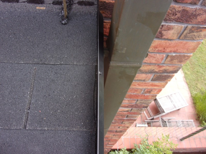 Boční a čelní okraj střechy jsme zakončili černým plechem – tzv. okapnicí, a protože pergola stojí těsně u stěny domu, bylo důležité utěsnit mezeru mezi střechou a stěnou domu, což jsme provedli dalším pruhem tvarovaného plechu. Výsledkem je zcela nepropustné napojení, které chrání zeď před vlhkostí.