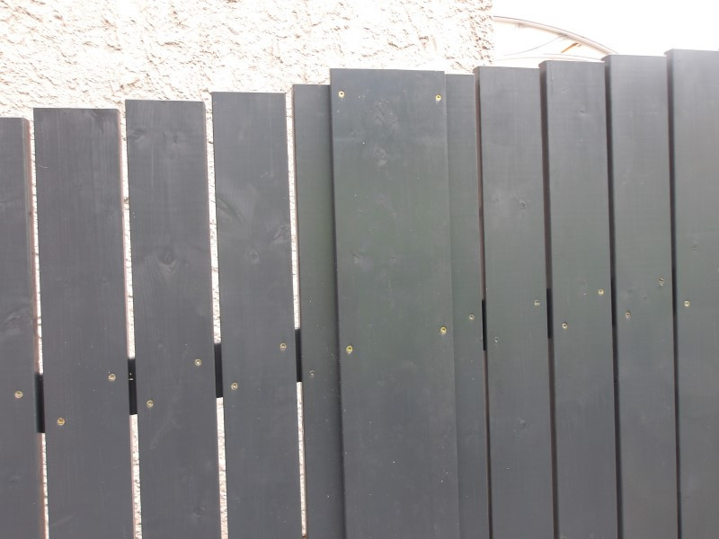 Nový plaňkový plot jsme vyrobili ze smrkového dřeva, které jsme nejprve naimpregnovali a poté opatřili moderním nátěrem v antracitově šedém odstínu. Tato kombinace nejen prodlužuje životnost dřeva, ale také dodává oplocení elegantní vzhled. Plotové plaňky o rozměrech 27 × 130 × 1600 mm mají rovné horní zakončení, díky čemuž působí čistě a minimalisticky.