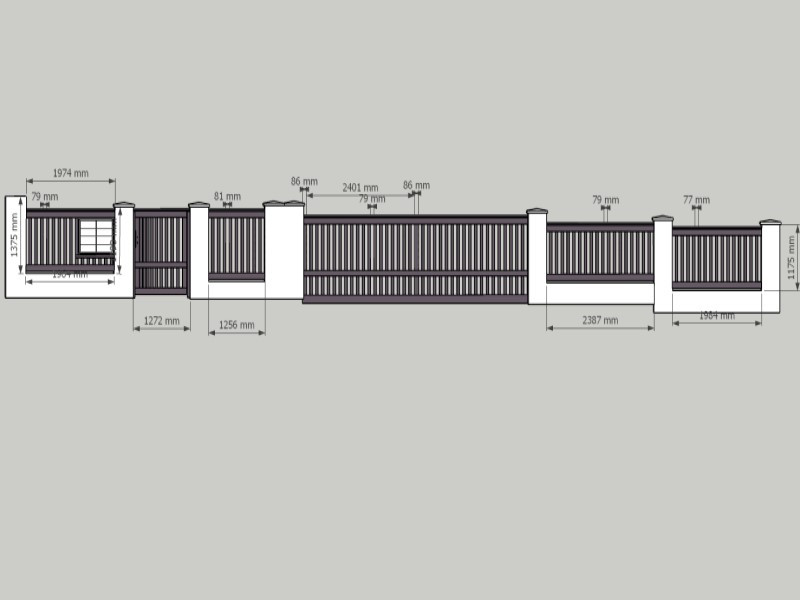 Protože nový dřevěný plot bude kotvený mezi původní betonové sloupky, bylo potřeba každé ze čtyř plotových polí vyrobit v jiném rozměru. Výroba probíhala v naší dílně podle přiložené výkresové dokumentace, kde jsme plotová pole předmontovali v celkové délce cca 7,5 metru. To umožnilo rychlou a přesnou montáž potom přímo na místě.