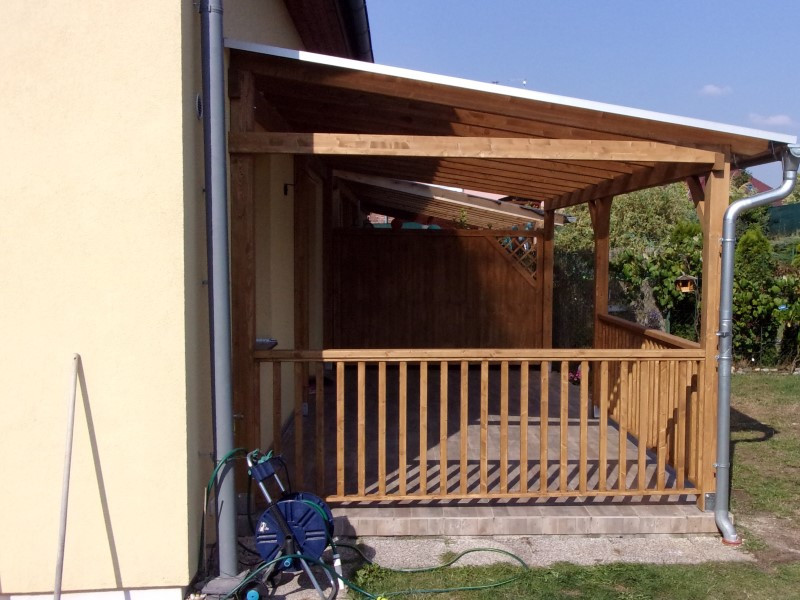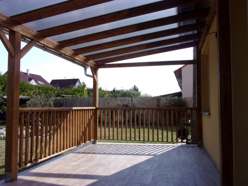 V rámci zakázkové výroby jsme pro našeho zákazníka Martina navrhli a vyrobili dva funkční doplňky do stávající zastřešené pergoly. Čelní a boční dřevěné balkonové zábradlí a dřevěná zástěna do pergoly typu Modern s rohovou mřížkou designově doladí zahradní pergolu. Výroba dřevěných doplňků proběhla u nás ve firmě, montáže pak přímo na místě.