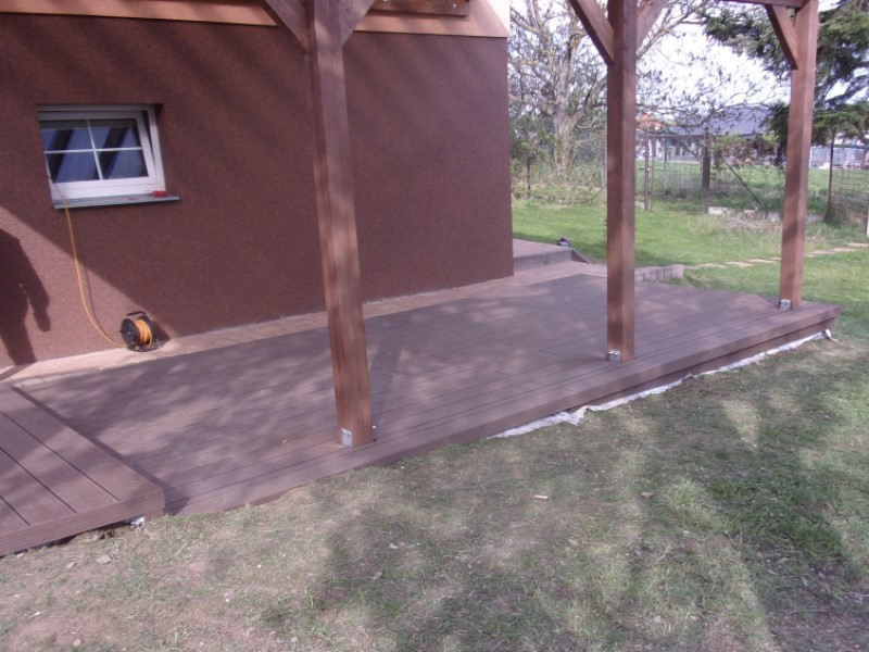 Když nás oslovila naše známá zákaznice, měla jasnou představu – chce u své novostavby vytvořit pohodlné místo k posezení s výhledem do zahrady, které bude krásné na pohled a zároveň nenáročné na údržbu. Volba padla na moderní venkovní podlahu z WPC prken v elegantním čokoládovém odstínu. Tato WPC podlaha na terasu si získává stále větší oblibu – vypadá jako dřevo, ale chová se jako odolný materiál budoucnosti.