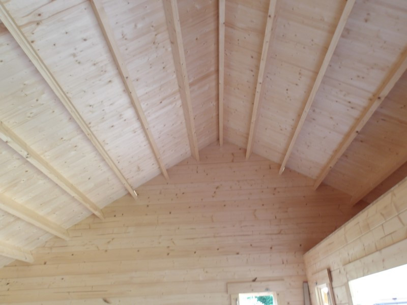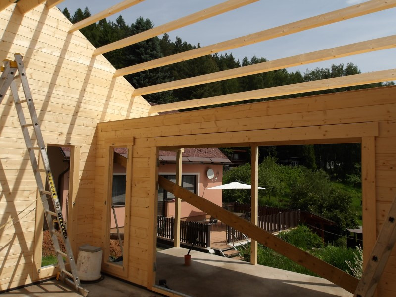 Díky promyšlené konstrukci byla stavba doslova radostí. Stěnovice o tloušťce 44 mm mají vyřezané zámky, které do sebe přesně zapadají, a tak vzniká mimořádně pevná a kompaktní konstrukce. Montáž střechy je obdobně jednoduchá – střešní palubky s vyfrézovanými drážkami se zasouvají do sebe a postupně se zajišťují spojovacím materiálem. I když má střecha plochu úctyhodných 42 m², šla montáž hladce a bez komplikací.