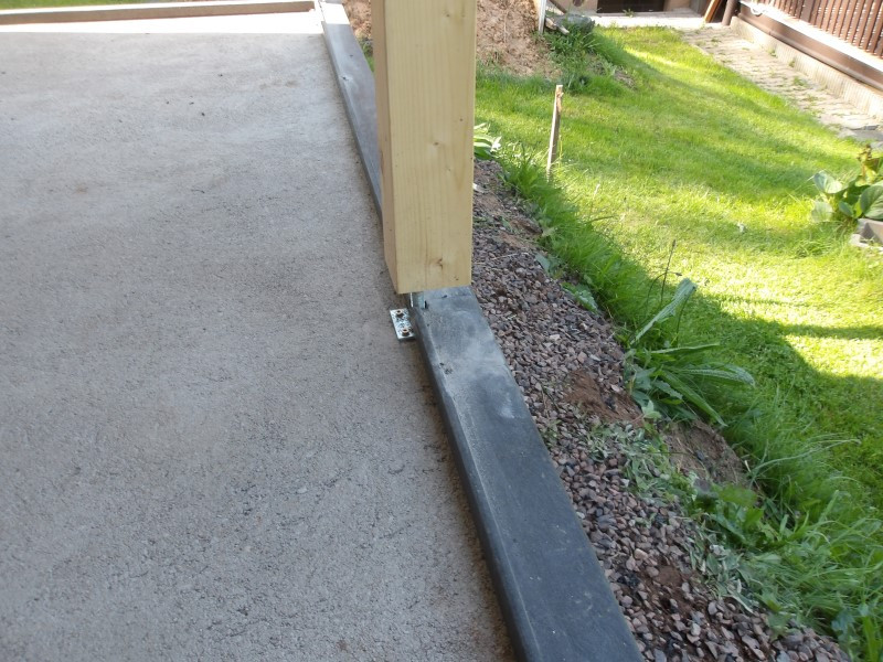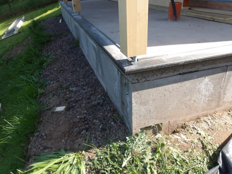 Montáž zahradní chaty probíhala na základový hranol z tvrdého plastu, který byl položen po celém obvodu chaty na zákazníkem připravené betonové desce.